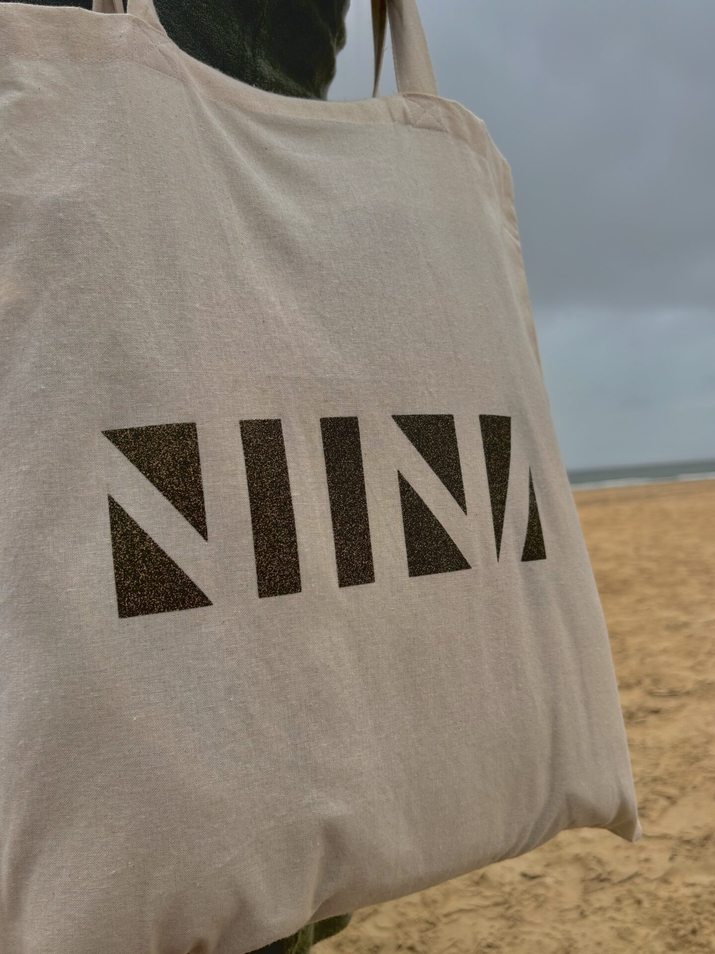 Tote bag en coton beige, à anses longues, parfait pour la plage ou pour un tour au marché !